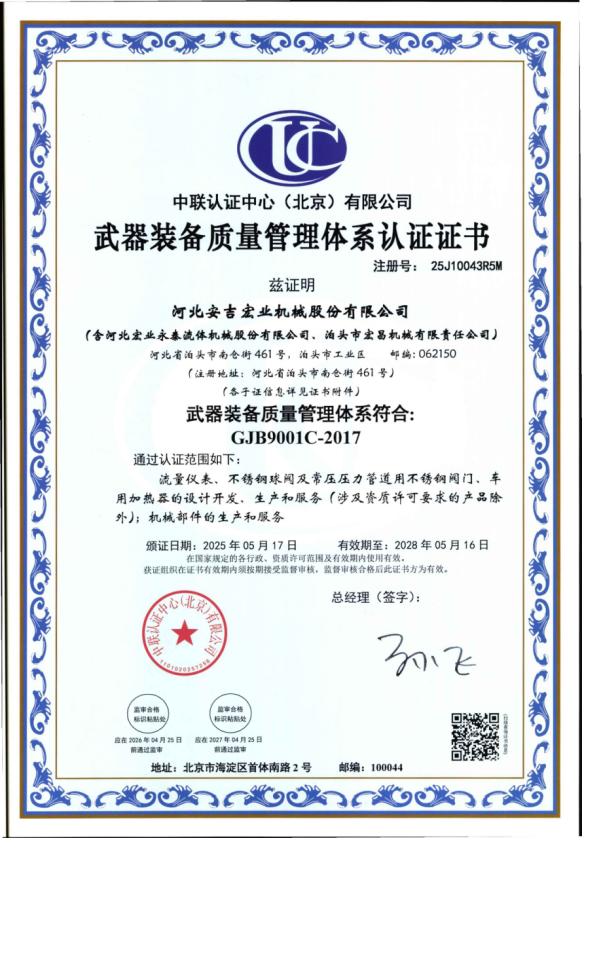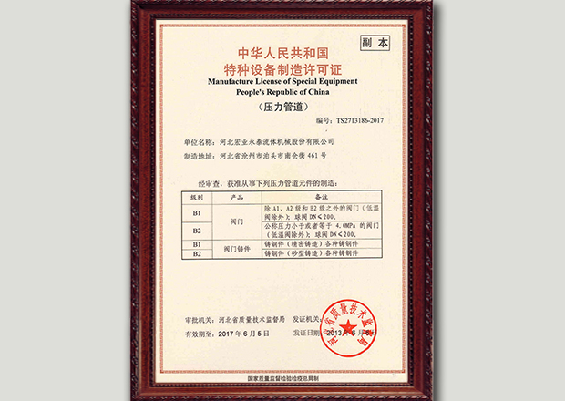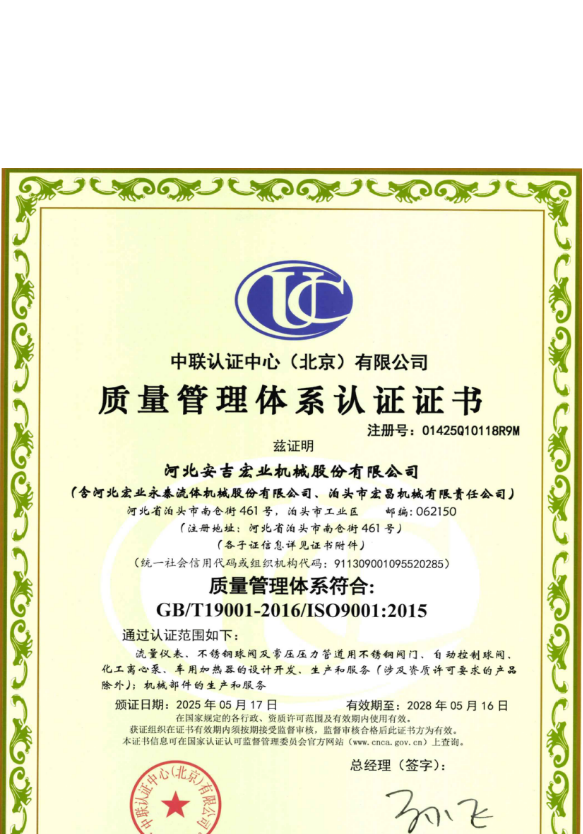 河北宏業(yè)永泰流體機械股份有限公司(原泊頭儀表總廠),生產流量儀表產品有三十多年的歷史。參加了節(jié)流裝置國家標準GB/T2624-1981的起草工作。公司占地12萬平方米,注冊資金3500萬元。主要產品有節(jié)流裝置、儀器儀表、各類不銹鋼閥門、各種化工離心泵。公司取得了ISO9001:2015質量體系認證、挪威船級社CE認證、出口產品Emark認證、特種設備制造許可證等。同時河北宏業(yè)永泰還是中石化物資供應商網絡成員,取得了中石油、中海油物資供應商準入證,是中國神華集團、華電集團、大唐集團、中廣核等公司合格供應商。產品出口日本、阿爾及利亞等國家。
