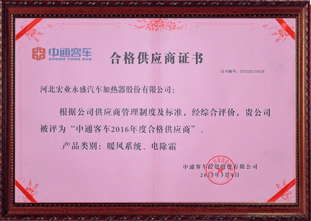 河北宏業(yè)永盛汽車加熱器股份有限公司,占地32萬平方米。目前,公司已擁有加熱器30多項發(fā)明專利和實用新型專利,形成了5大系列數(shù)十種型號、規(guī)格。產品包括:獨立式水冷、風冷、燃氣加熱器、電加熱器、尾氣加熱器、除霜器、散熱器、各種風機及控制系統(tǒng),成為宇通客車、金龍客車、中通客車、北汽福田、比亞迪等汽車的主流供應商。公司通過了ISO9001:2015質量體系認證、 IATF16949質量管理體系認證、國軍標GJB9001B-2009認證、挪威船級社CE認證、出口產品Emark認證等。